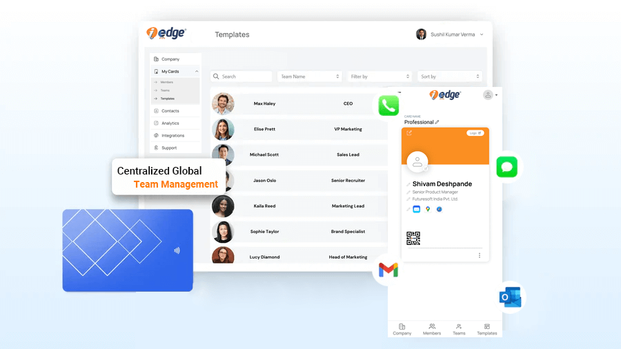 iEdge streamlines smart business cards for enterprise-wide use. This makes every electronic visiting card accurate and instantly deployable across teams and locations.